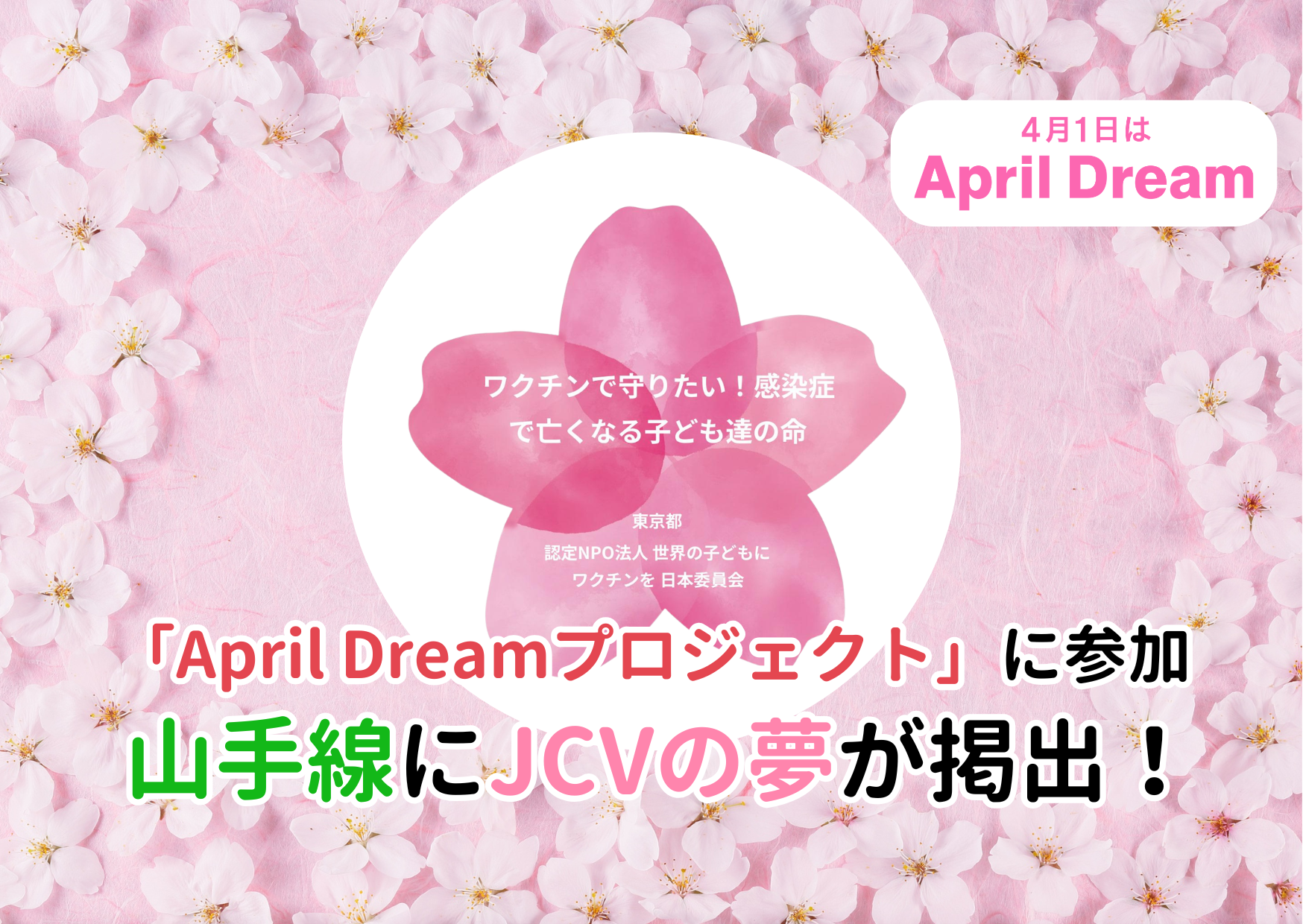 JCVは、4月1日を夢を語る日にしようと提唱する株式会社PR TIMESの企画「April Dreamプロジェクト」に今年も参加いたします。 JCVの夢は「ワクチンで守りたい!感染症で亡くなる子ども達の命」です。日本では …