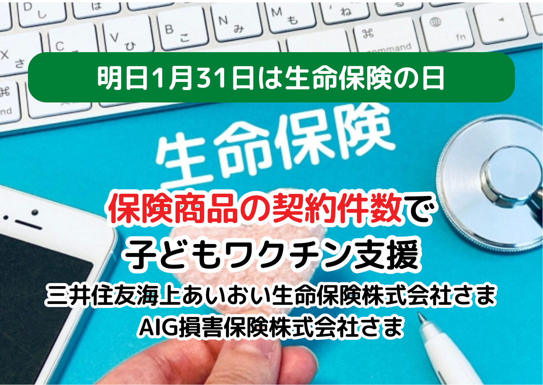 明日1月31日(土)は、生命保険の日です。1882年のこの日、日本で初めて生命保険金が遺族に支払われたことが新聞紙面で大きく報じられ、生命保険への関心が高まるきっかけとなりました。 保険商品の契約件数で子どもワクチン支援 …