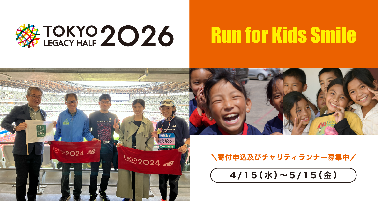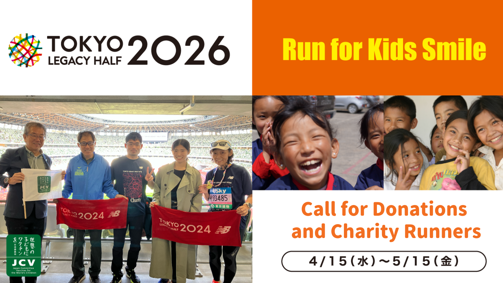 “Japan Committee, Vaccines for the World’s Children (JCV)” is an official charity of the Tokyo Legacy Half Mar …