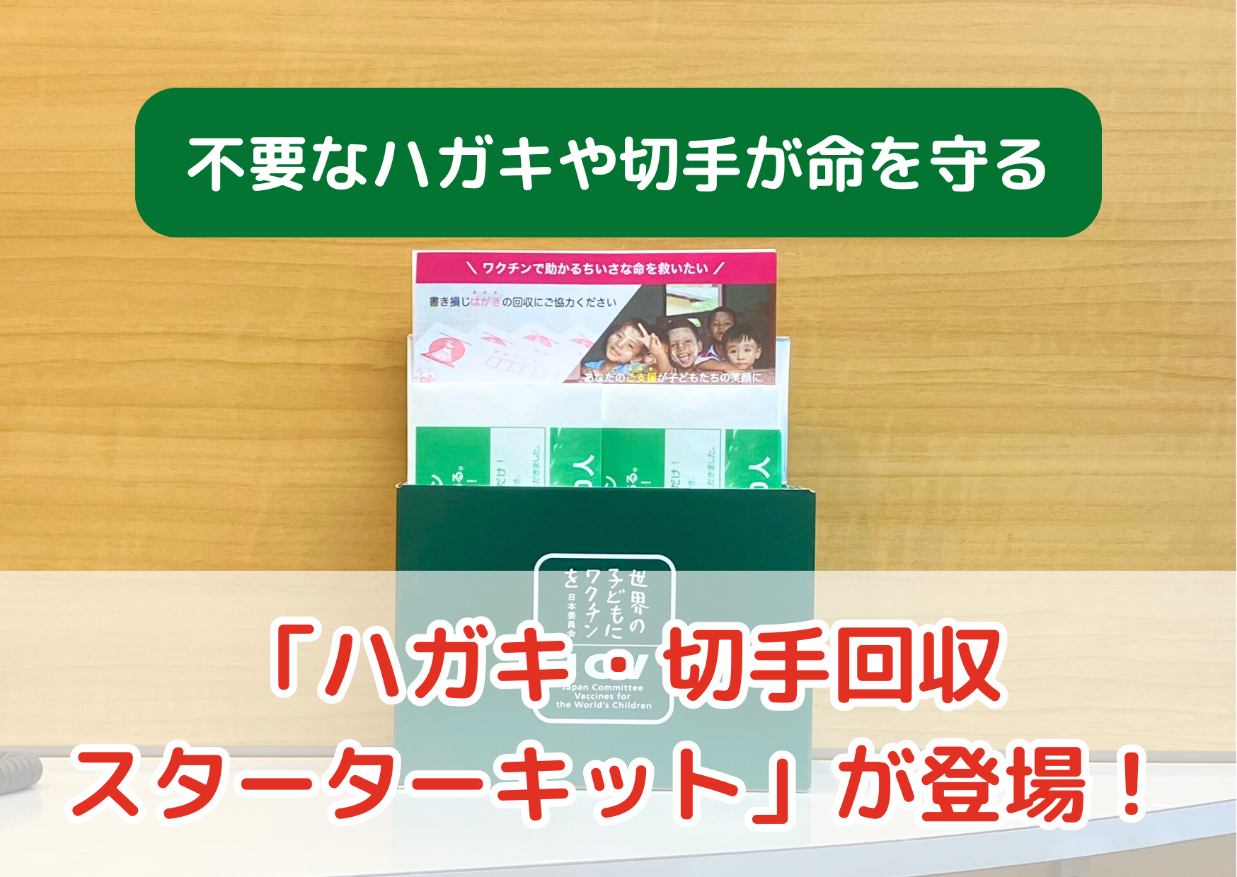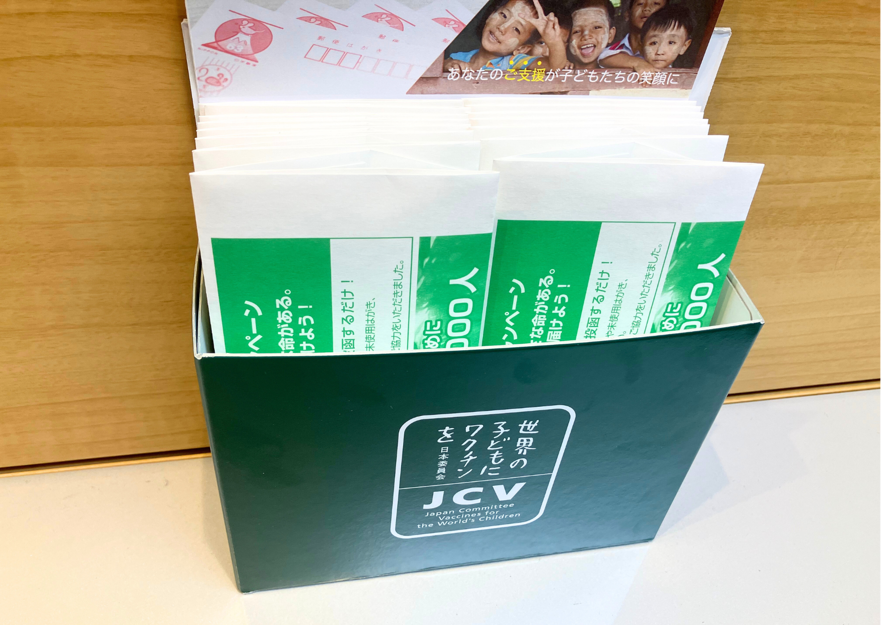 ポリオをはじめとした様々な感染症のワクチンを1人でも多くの子ども達に届けるため、JCVでは店舗やオフィスに募金箱のように設置できる「ハガキ・切手回収スターターキット」の配布を開始します。同封の回収用封筒を使えば、誰もが自分の好きなタイミングで、負担なく支援に参加いただくことができます。