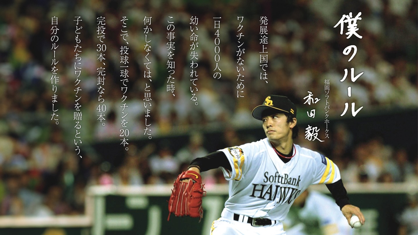 さらに2005年、JCVのスペシャルサポーターである和田毅さん(元プロ野球選手)が「1球投げるごとに10人分の支援を行う」というルールを自ら決め、「僕のルールによる支援」を開始してくださいました。和田さんが出演したAC広告は大きな共感を呼び、「自分らしく、また頑張った分だけ寄付が増え、自分自身の励みにもなる」という、これまでになかった新しい寄付の方法「タイアップ協力」として広がりました。