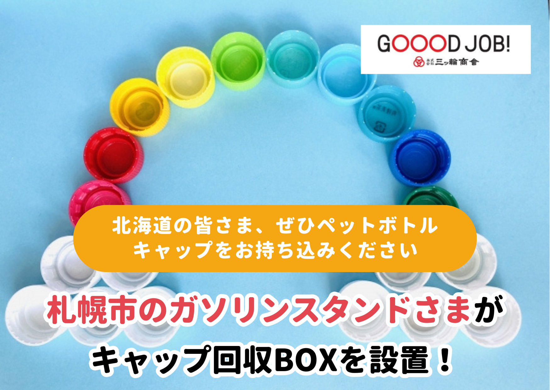 ペットボトルのキャップを回収リサイクル事業者や回収BOX設置拠点に引き渡すことで、集まったキャップの重量に応じた金額が寄付できる「ペットボトルキャップ回収で子どもワクチン支援」に多くのご協力をいただき、ありがとうございます。このたび、株式会社三ッ輪商会さまが、運営する札幌市内の3つのガソリンスタンドにキャップ回収BOXを設置してくださいました。札幌市の皆さま、ぜひキャップを集めてお持ち込みください。