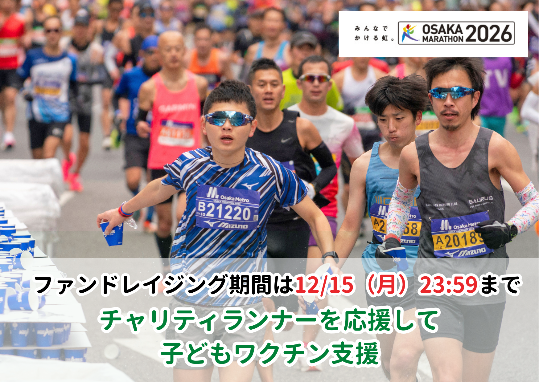 「出走が決まったランナーの方々を応援するファンドレイジング」を通した子どもワクチン支援は、12/15(月)23:59まで受け付けております。ご寄付はランナーを通してJCVに寄付され、ポリオや破傷風などのワクチンに換わり、途上国の子ども達に贈られます。