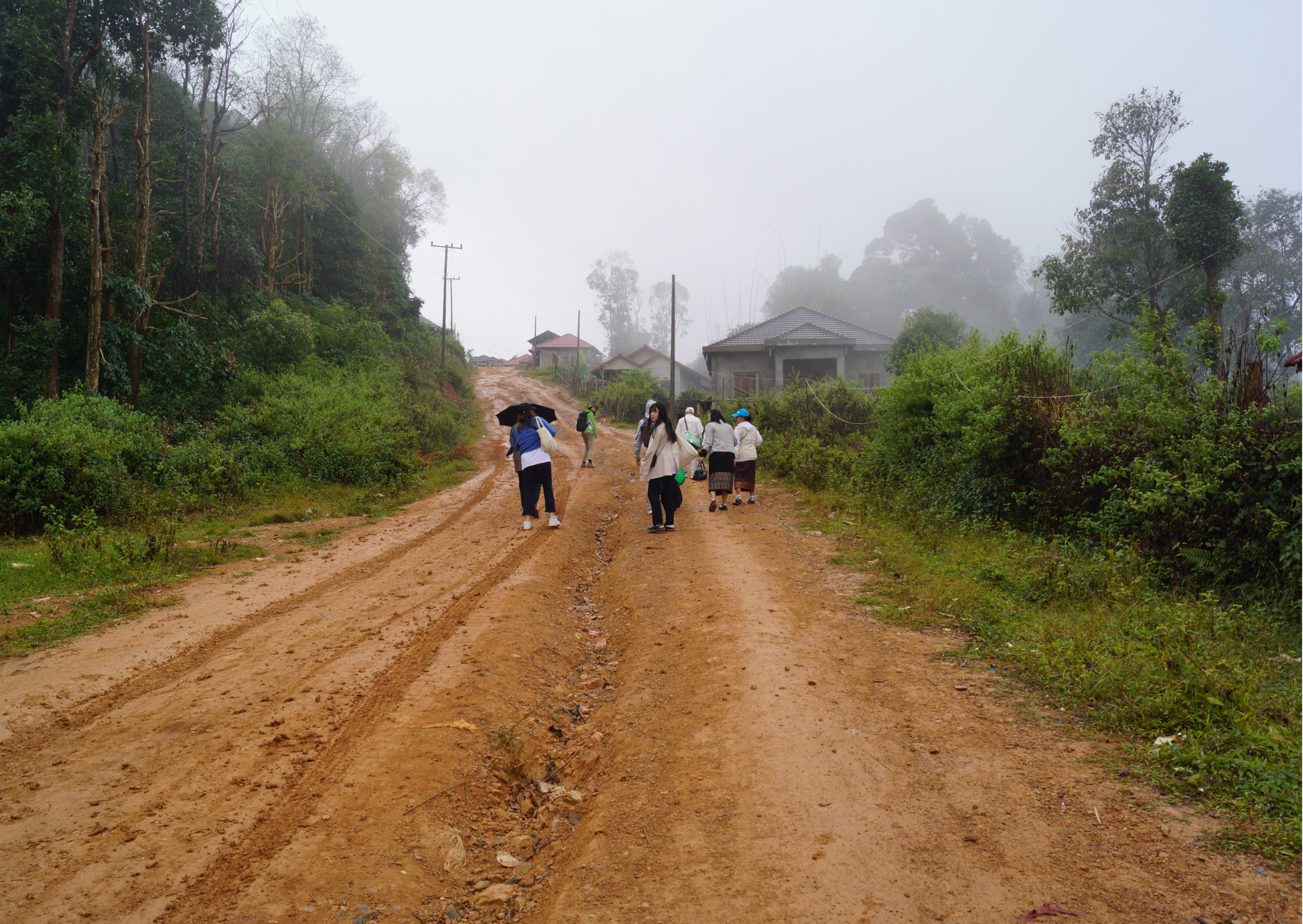 今年は、11月16日から1週間の日程で、8名の支援者の皆様と事務局スタッフがラオスを現地視察に訪問しました。乾季にもかかわらず時ならぬ雨模様に、山岳地帯ならではのぬかるみに大苦戦。四輪駆動車でも登れず、赤土の泥が靴に堆積して歩くもままならず、最後は農耕用作業車に乗り込んでようやく子ども達の元に着到――といった一幕もありましたが、これも、支援国の実情。日々、ワクチンを現場に届けるにも、同様な苦労があることを知っていただく、またとない体験となったようでした。