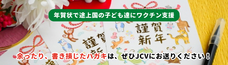例えば、85円ハガキ10枚で約30人の子ども達にポリオワクチンを届けられます。皆さま、いらないハガキや切手が見つかった時は、ぜひ、JCVにご郵送ください。