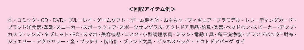 ※1:買取対象が限定されている物もありますので、お申し込み前に以下のリンクを必ずご確認ください。
